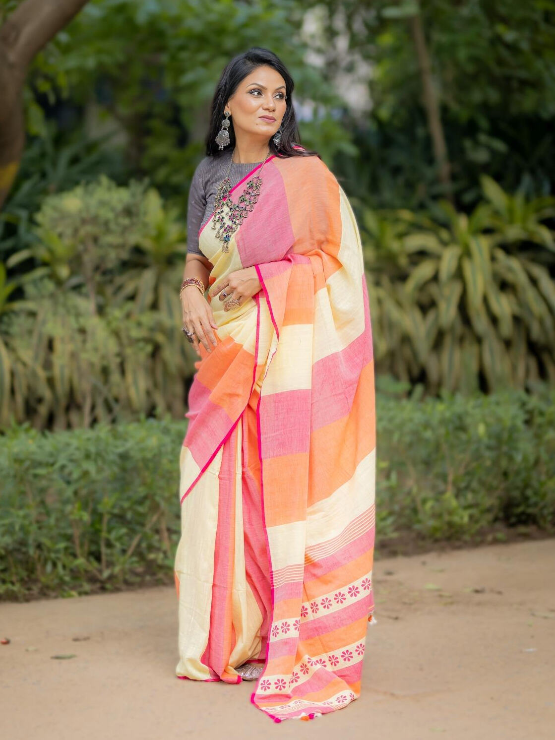 Disclamier : As these sarees are handmade there may be slight variation which adds to the uniqueness of each saree.