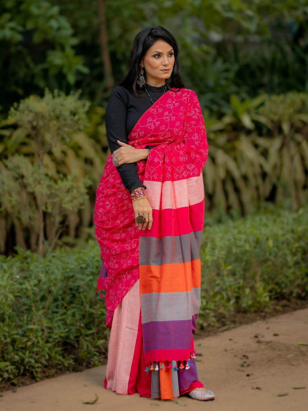 Disclamier : As these sarees are handmade there may be slight variation which adds to the uniqueness of each saree.