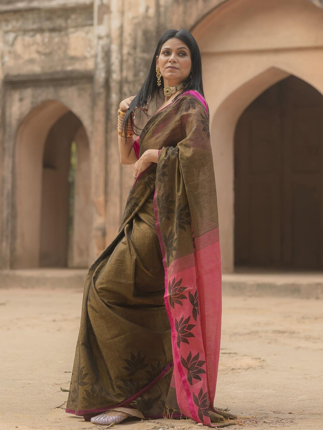 Lotus Khaki saree
